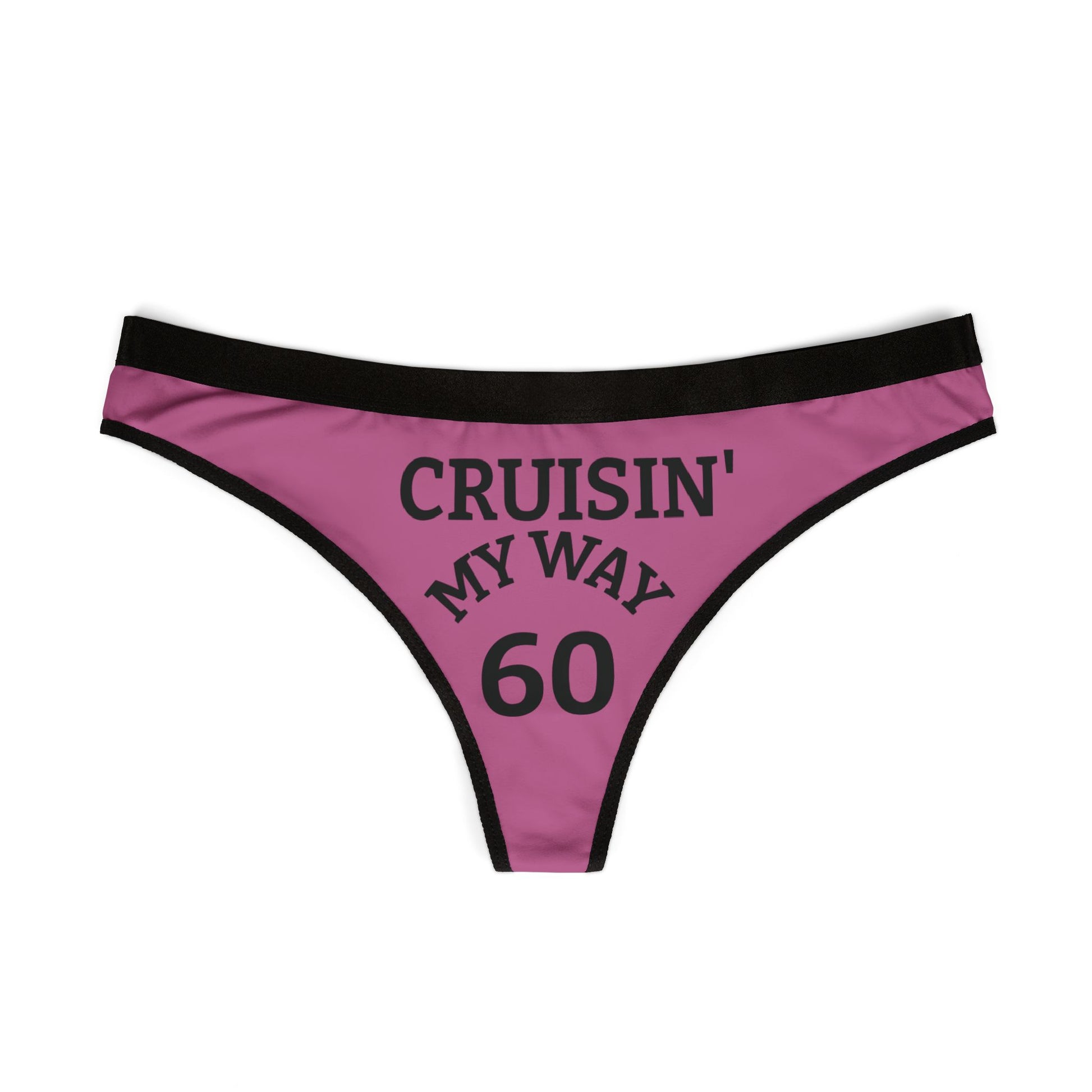 Women’s Thong – “Cruisin’ My Way 60” Pink Birthday Novelty Underwear